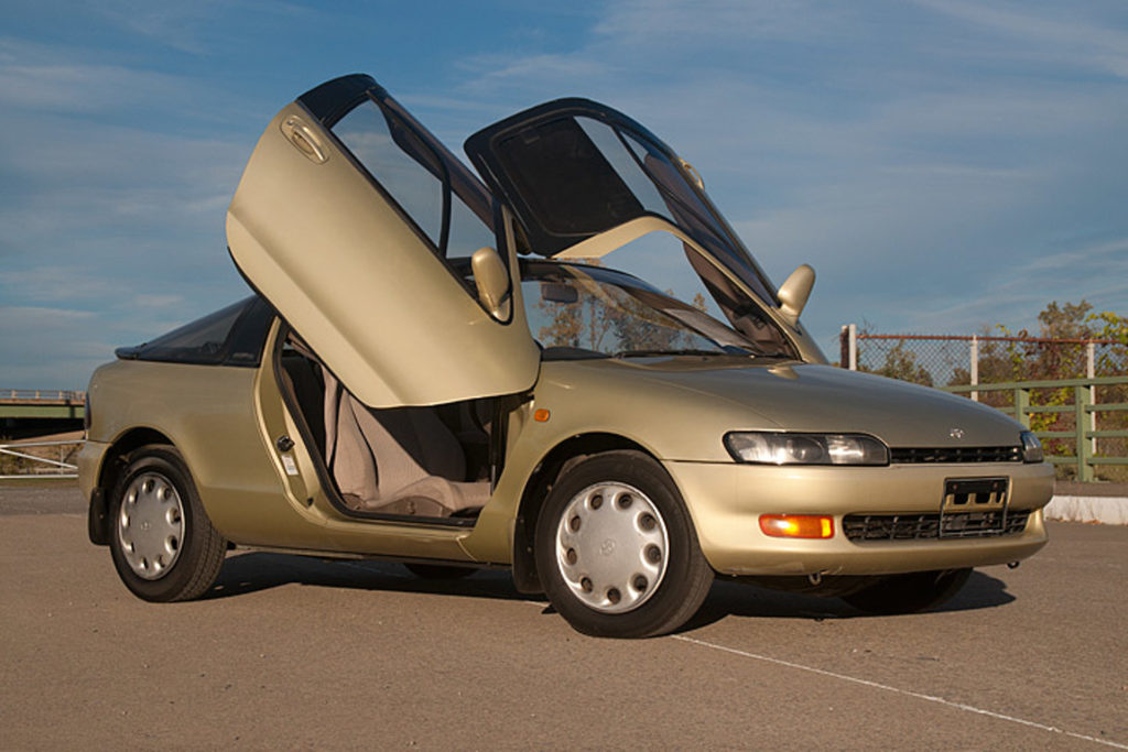 At first glance, this Toyota model appears to be of the run-of-the-mill variety. However, it shocks everyone upon bursting open butterfly doors. Rarely do hatchback coupes come equipped with a glass roof and this sort of style. However, it just seems to work in this case. It’s a quintessentially ’90s car with the foresight to offer futuristic elements.