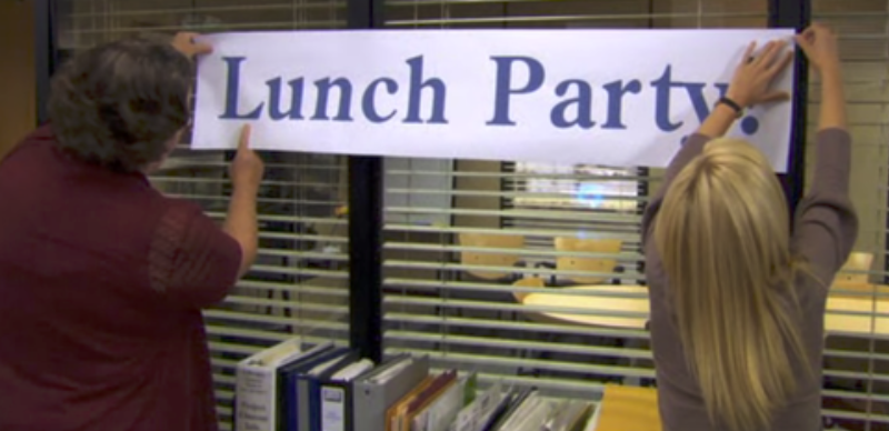 Unlike other episodes, “Launch Party” is full of enough memorable plot lines to successfully fill the hour mark. Michael abducts a pizza delivery guy (seriously) after learning he’s been cut from the Dunder-Mifflin launch party. Dwight attempts to prove his worthiness to Angela by selling more paper than Dunder-Mifflin’s new computer program, and Andy’s wooing of Angela culminates with a conference call performance of ABBA.