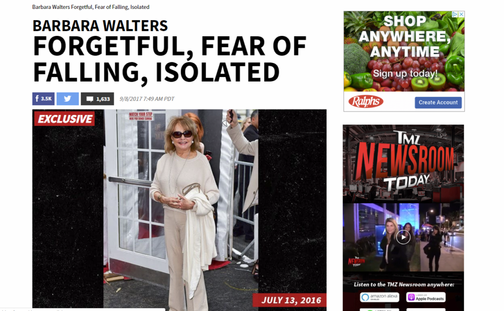 In 2017, TMZ came out with a report in which Walters allegedly was confined to her New York apartment. The report indicates that Walters had been “increasingly forgetful and confused.” Additionally, TMZ reported that Walters was not wanting to receive guests — whether they were old friends or people from ABC.