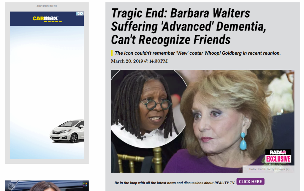 A report from RadarOnline (in March of 2019) spoke of Walters allegedly suffering from advanced dementia. Walters hasn’t made a public appearance in three years, and is said to be extremely comfortable living in a swanky New York apartment. While her condition is widely speculated about at this point, a further revelation in the RadarOnline report speaks about a recent encounter between Walters and current co-host Whoopi Goldberg…